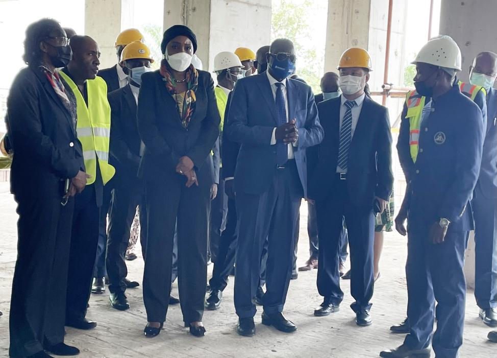 On the afternoon of March 29, Mr. Ousmane Diaguana, the Vice President of World Bank, accompanied by Ms. Ebouka-Babackas, the Minister of Planning, and Ms. Korotoumou Ouattara, the Chief Representative of World Bank to the Republic of the Congo, visited the National Institute of Statistics contracted by Congo Zhengwei. The General Manager of Congo Zhengwei Mr. Xu Yunzhi and the representatives of the project owner and supervisor accompanied the visitors and reported about the project.