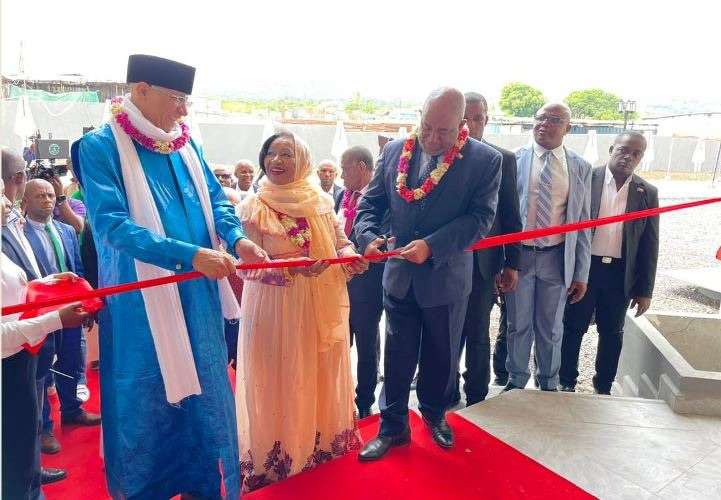 The ceremony began with a traditional local welcome dance as the guests arrived. The atmosphere reached its peak with the arrival of the President and his wife. Then, the Chairman of ASECNA and the President of the Comoros delivered addresses, speaking highly of the project success. Following the President's address, a ribbon-cutting ceremony was held for both the airport control tower project and the dormitory project. Accompanied by the staff, they visited the project sites, where visitors congratulated the company on the successful completion of the project. Witnessed by some 450 people from all walks of life, the ceremony concluded successfully.