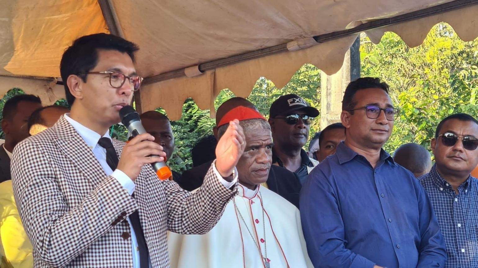 Le Président Rajoelina (premier à gauche) a assisté à la cérémonie de démarrage du projet et a prononcé un discours
