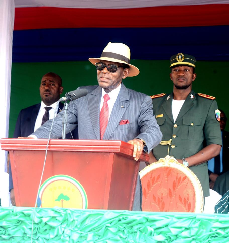 Le Président Obiang (gauche) et la Première dame assistent à la cérémonie d'inauguration