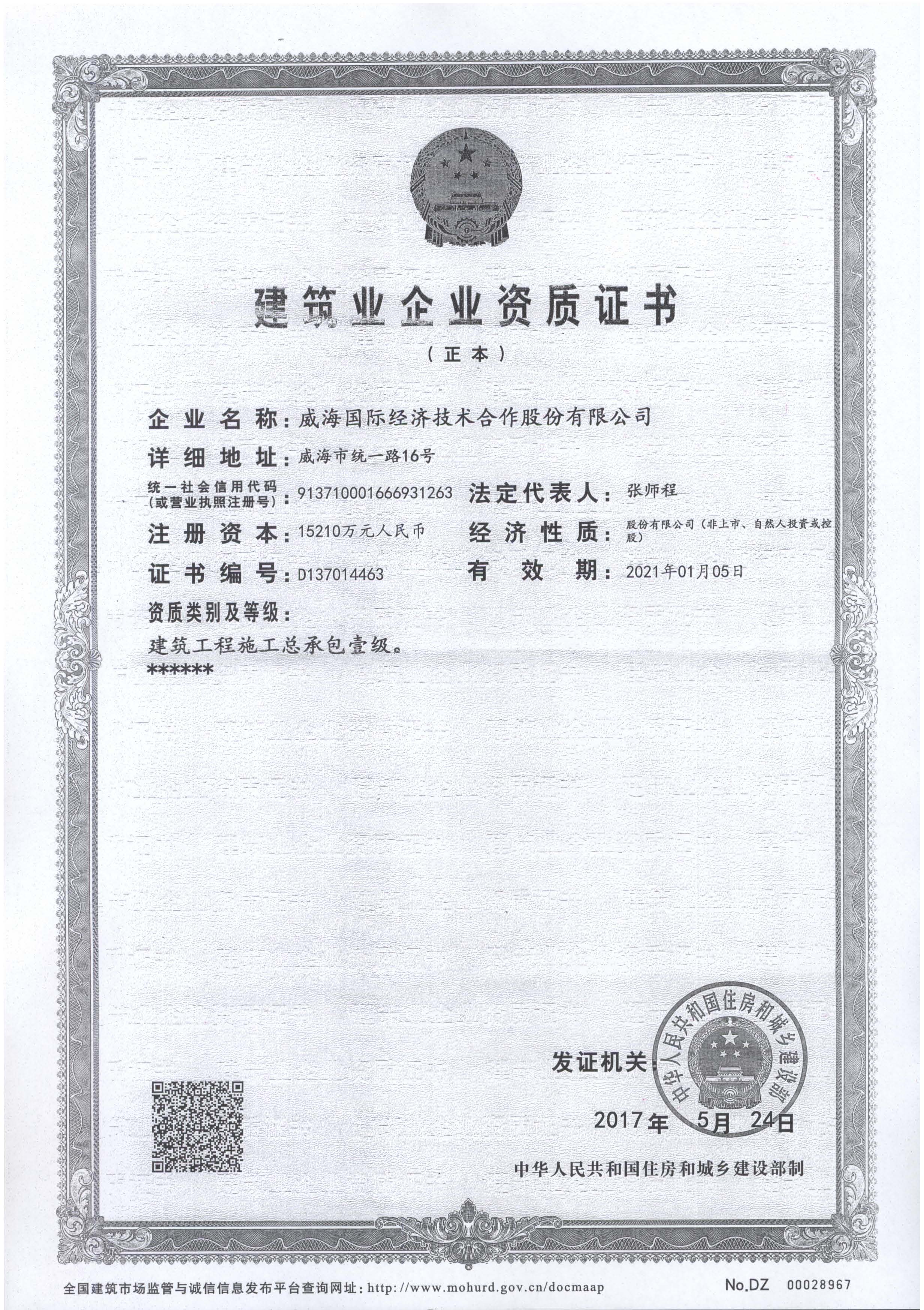 対外援助プロジェクトA級(jí)建設(shè)企業(yè)許可書…