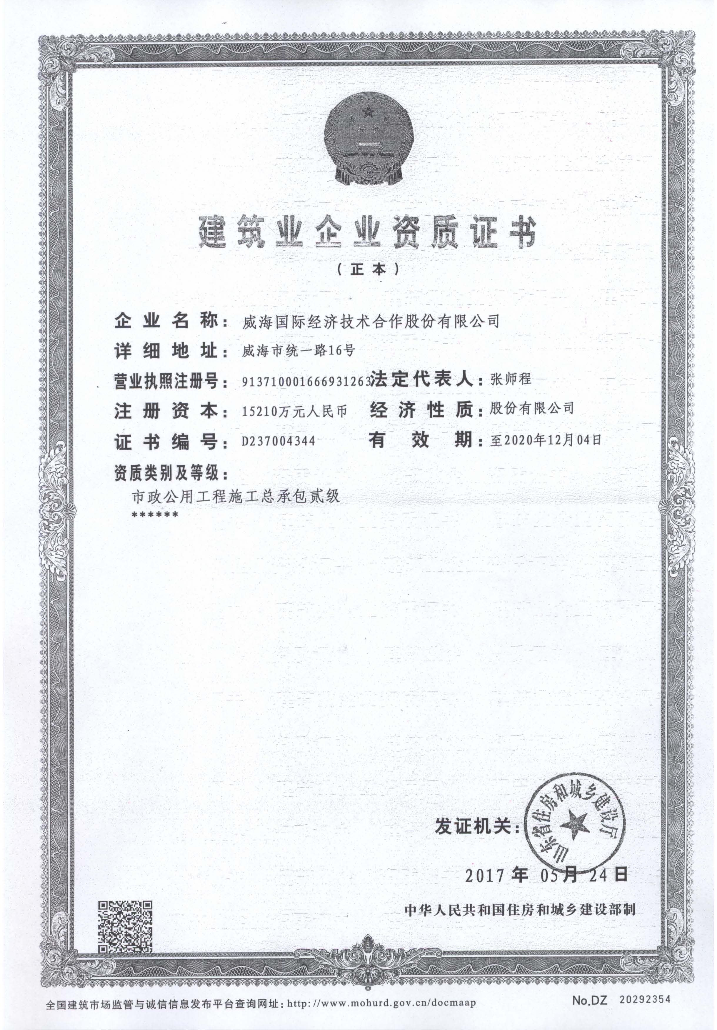 市営公共インフラ建設(shè)業(yè)請(qǐng)負(fù)2級(jí)許可書