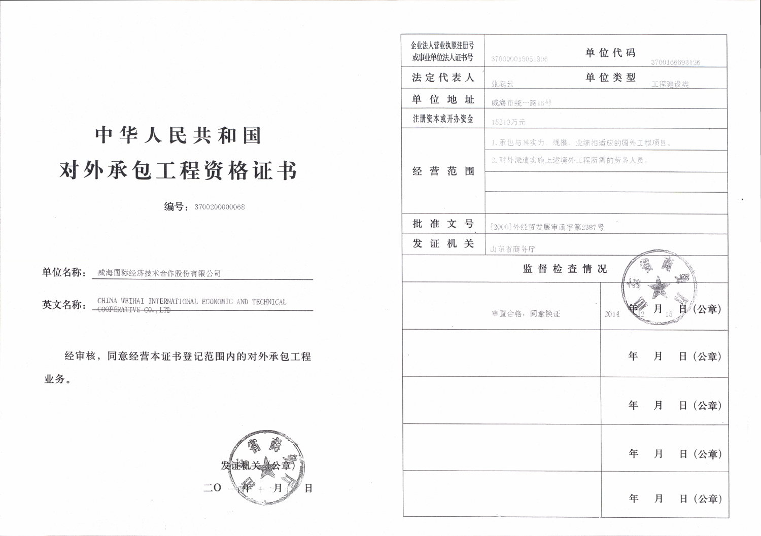 海外建設(shè)業(yè)請負(fù)許可書