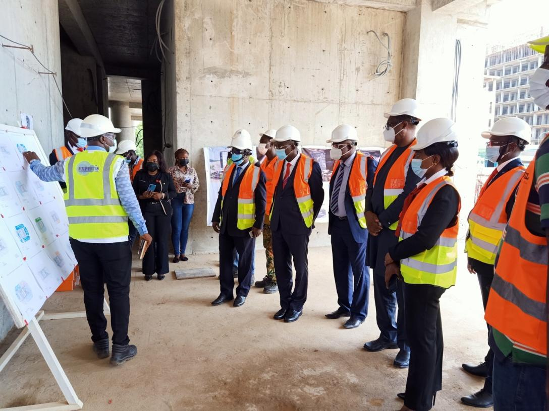 10月6日午前、西アフリカ銀行ブルキナファソ駐在のKI-ZERBO総支配人一行はオーナーであるCORIS銀行のOUATTARA総支配人のご案內(nèi)で、ブルキナファソCORIS銀行のオフィスビルの工事現(xiàn)場(chǎng)に足を運(yùn)んで、オーナー代表、監(jiān)理者およびプロジェクトチームからの狀況紹介を聴取した後で、呉志鑫プロジェクトリーダーの案內(nèi)で現(xiàn)場(chǎng)を見學(xué)しました。