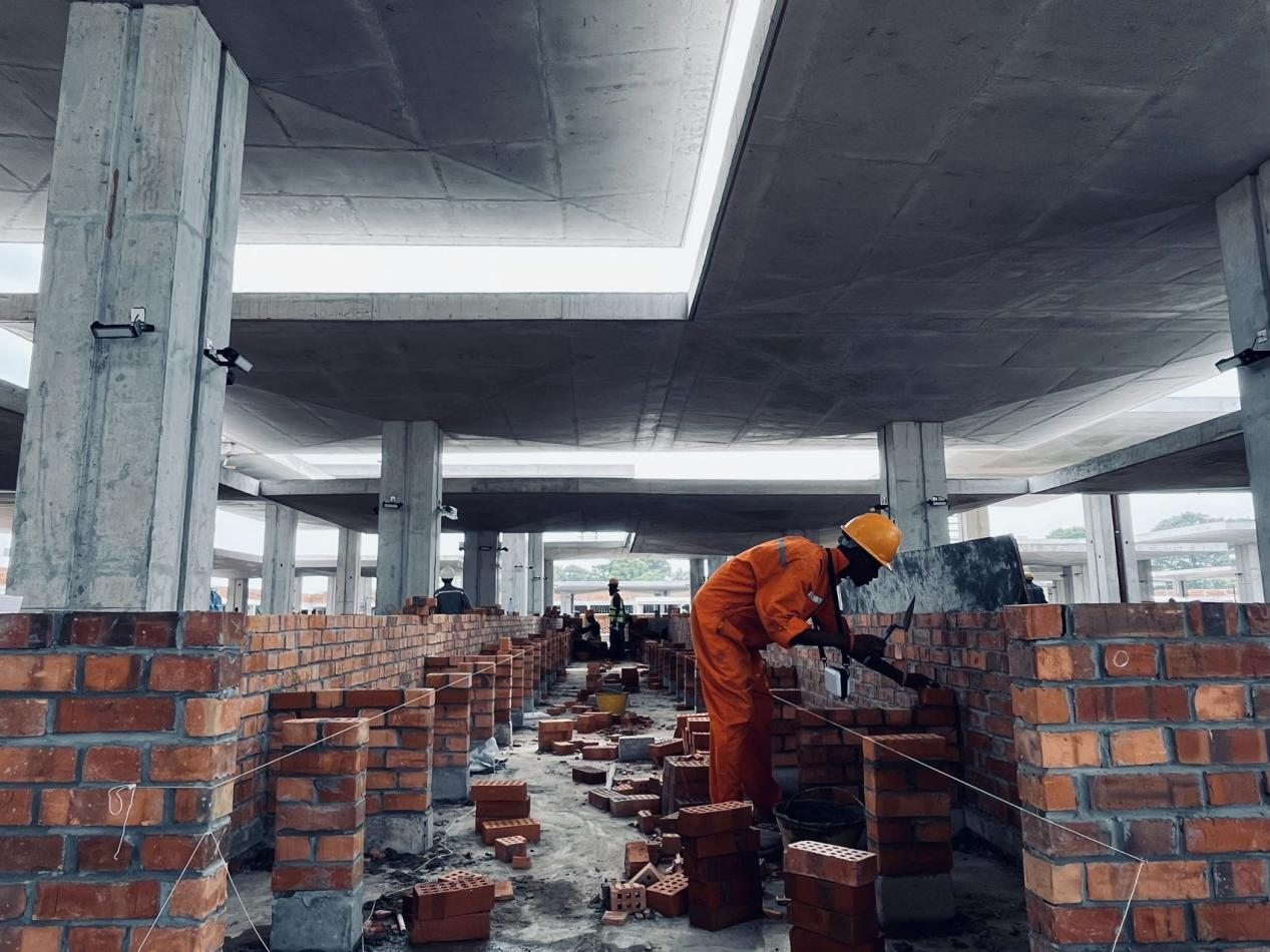 本體落成後、Alanさんは左官に応募してきたなんて、みんな困惑した。何度も聞いてみたところ、彼は恥ずかしそうに言った?!弗抓恁弗Д趣司蛣氦工?/span>1年前に失業(yè)した。自分には何の技能もなく、特にキンシャサという人口がとても多い都市では、就職先がなかなか見つからないので、私は元ZANDO市場で服裝露店運(yùn)営を妻に手伝った。妻と結(jié)婚して以來7、8年間で生活が辛かった。子供がまだ幼く、生活が大変だった。だからプロジェクトの労働者募集を知った途端、躊躇なく面接に來た。何の技能もない為、最初は筋肉労働者として働くしかなかった。中國人先輩の韓さんに特に感謝している。常に辛抱強(qiáng)く現(xiàn)場の施工知識(shí)を教えてくれて、図面の読み方も教えてくれ、私ができることは増えてきた。プロジェクト本部は昇進(jìn)昇給してくれて、家庭生活を潤してくれた。妻には周りの環(huán)境が悪くて辛いから、もう露店を辭めてもよい。私は1人で家計(jì)を支えられるからと言った。だが、妻は私の負(fù)擔(dān)を少しでも軽減すべく、露店を続けている。私は感動(dòng)した。妻がずっときれいな露店を望んでいる。私は自分の手で建築してプレゼントとして妻にあげたいので、煉瓦組積技能の習(xí)得を申し込んだ」。そう言って、Alanさんは目が潤んだ。プロジェクトチームはすぐに彼の申請に同意した。
