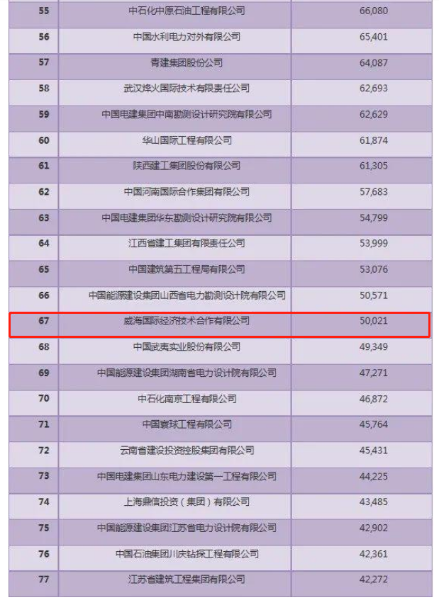 近日,商務部發(fā)布了2020年中國對外承包工程業(yè)務完成營業(yè)額和新簽合同額的100強榜單,我公司分別位居第58名和67名。入圍兩項對外承包工程百強企業(yè)名單,充分顯示了公司在艱難形勢下的韌性和良好的發(fā)展態(tài)勢,同時對提升“威海國際”品牌的影響力和推動業(yè)務的開展具有積極意義。