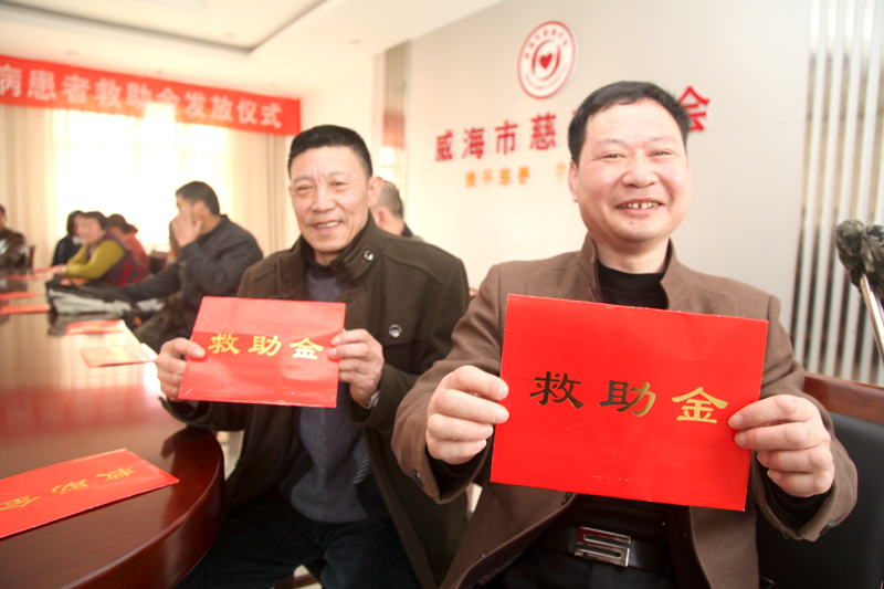 在救助金發(fā)放儀式現(xiàn)場,受助患者家屬代表李培強說,他的兒子今年36歲,7歲開始被查出患有血友病,多年來,全家一直在對兒子身體狀況的擔憂以及沉重的經(jīng)濟負擔雙重壓力下生活?!岸嗵澯辛送H公司、威海市慈善總會的及時救助,才讓我們有信心、有能力戰(zhàn)勝疾病?!?span>